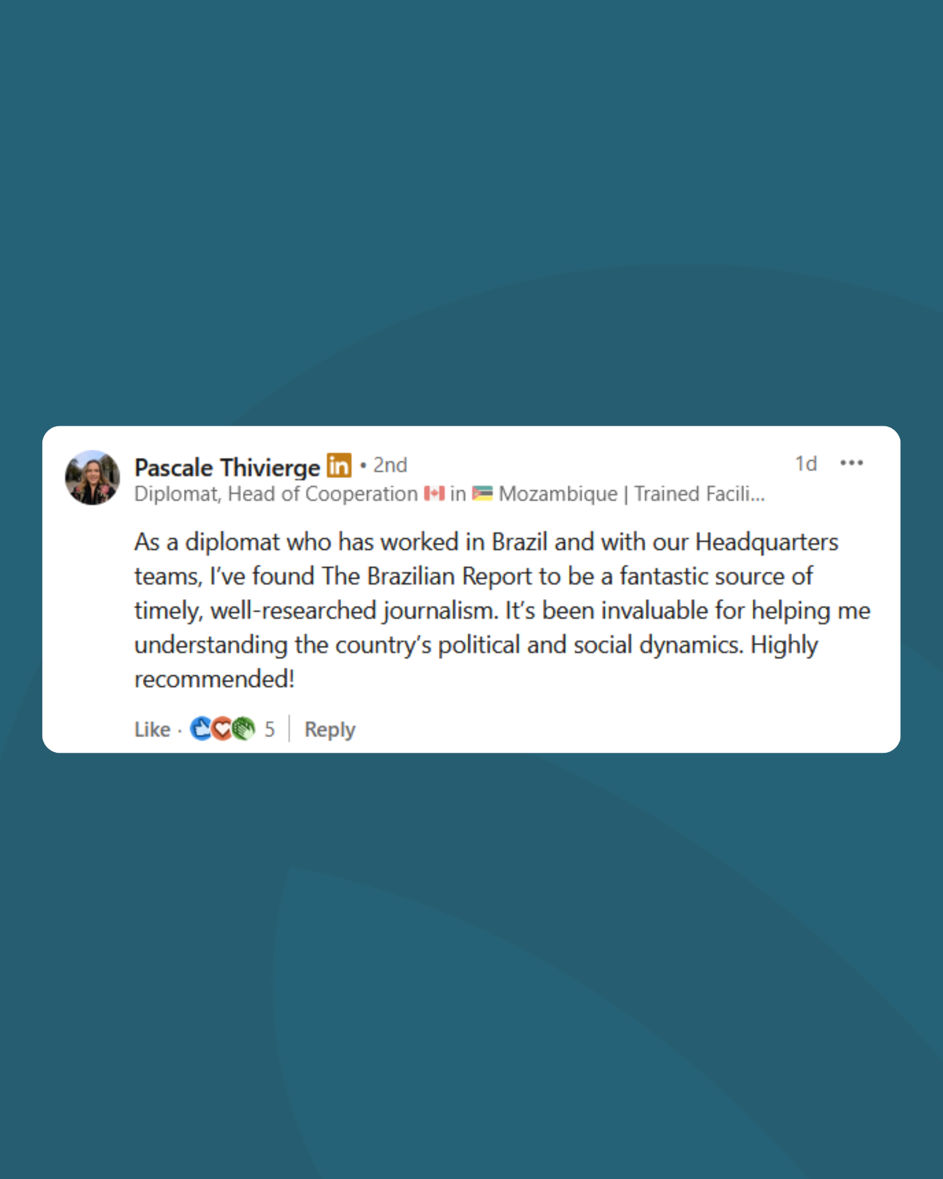 At The Brazilian Report, we ensure Brazil’s perspectives on democracy, justice, climate and human rights shape the international conversation. Since 2017, our Brazilian-led outlet has been giving the country a voice on the global stage.
