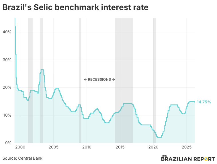 The Brazilian Central Bank cut its benchmark interest rate by a quarter of a percentage point on Wednesday, to 14.75% — its first reduction since May 2024, after five consecutive meetings at which policymakers held the Selic rate at 15%, its highest level in two decades.