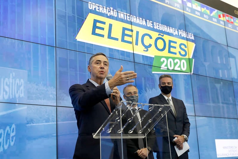 Luís Roberto Barroso, who was Brazil's chief electoral justice in 2020, gives a press conference after that year's municipal election. Photo: Roberto Jayme/TSE